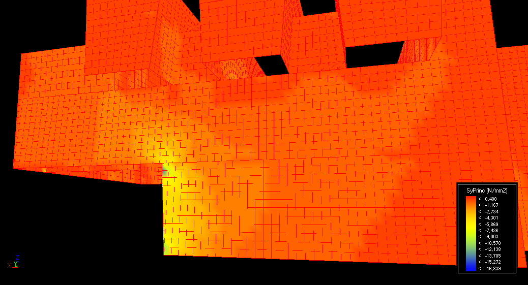 Modelización: Zona aligerada de reticular simulada mediante losa de inercia y peso equivalente.