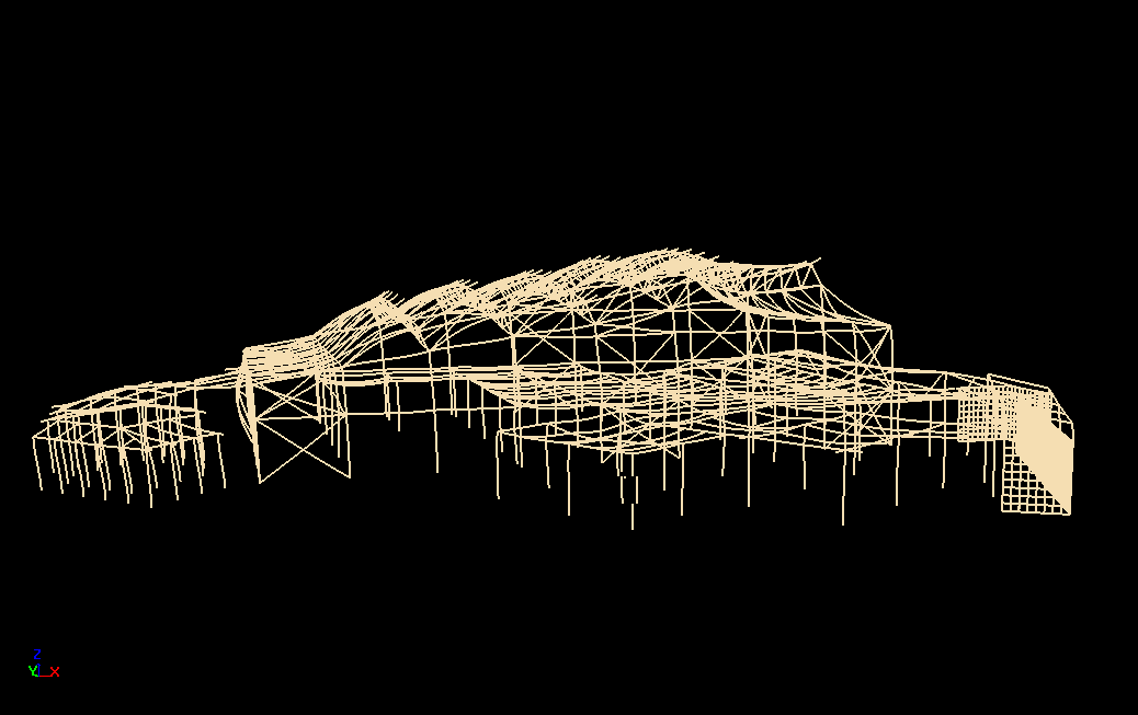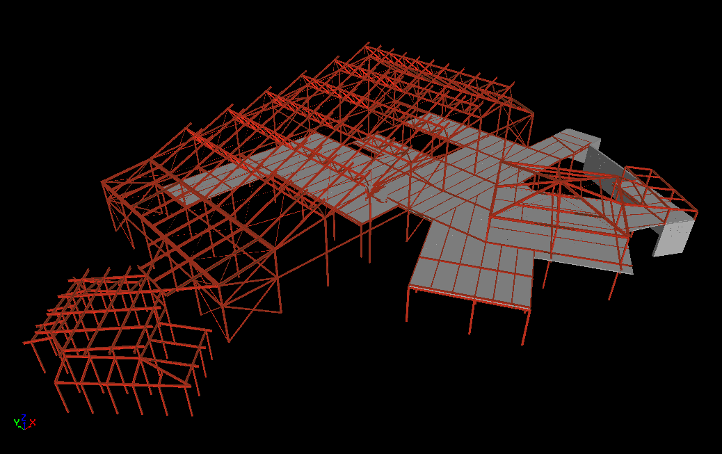 Solución: Estructura espacial metálica (varias familias) sobre pilares metálicos exentos y con cubrimiento de chapa colaborante.