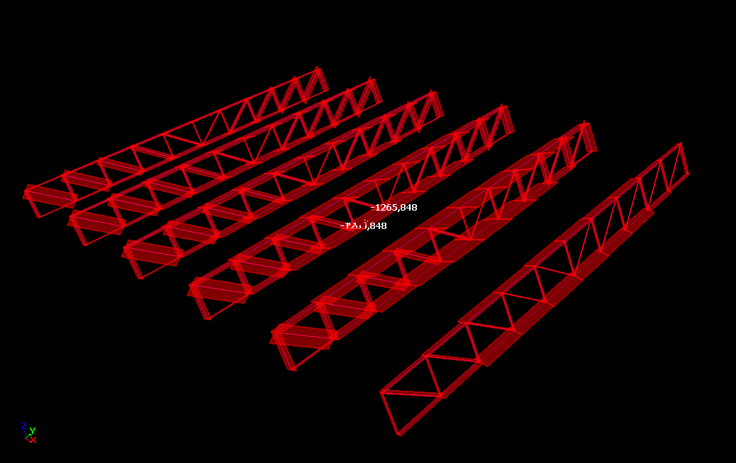 Modelización: Chapa colaborante como losa de hormigón a cierta distancia de las vigas y correas metálicas.